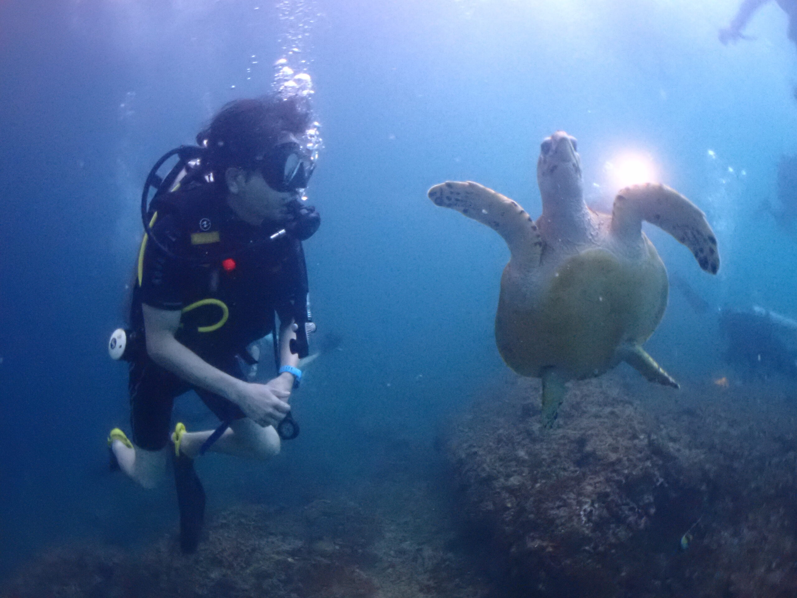 オープンウォーターダイバーの誕生 こんにちは、証です。日本からお越しのM様&N様が体験とファンのミックスダイブにご参加され、1日開けてN様がPADIオー・・・