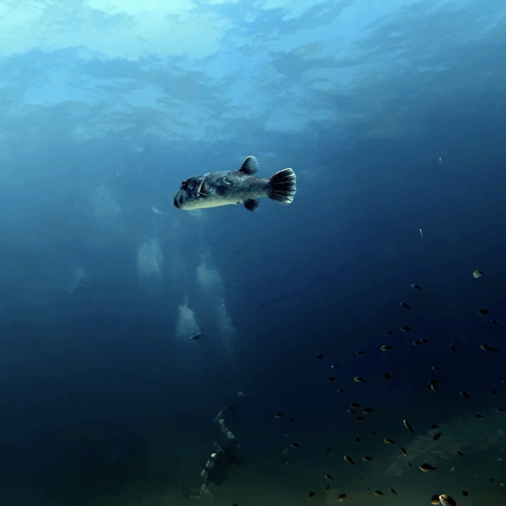 大きなモヨウフグがぷかぷか。。。。